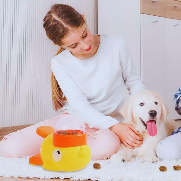 Con la forma de un alegre pato de dibujos animados, este dispensador de comida inteligente para perros en forma de rompecabezas alienta a tu mascota a comer lentamente y a pensar mientras juega, estimulando su cerebro, reduciendo la ansiedad y promoviendo una mejor digestión.